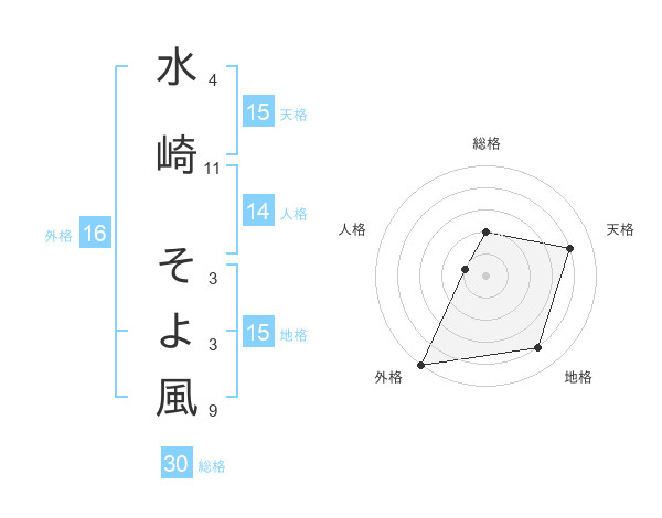 水崎 そよ風さんを姓名の画数から五運を鑑定