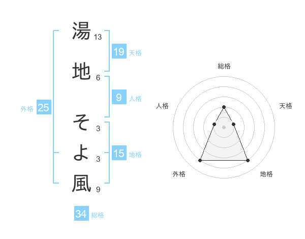 湯地 そよ風さんの総格は34画の2点!