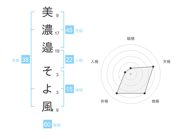 美濃邉 そよ風さんの総格は60画の1点!