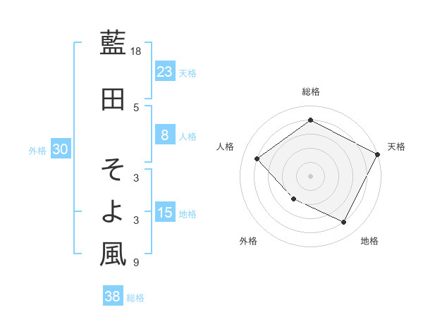藍田 そよ風さんの総格は38画の4点!