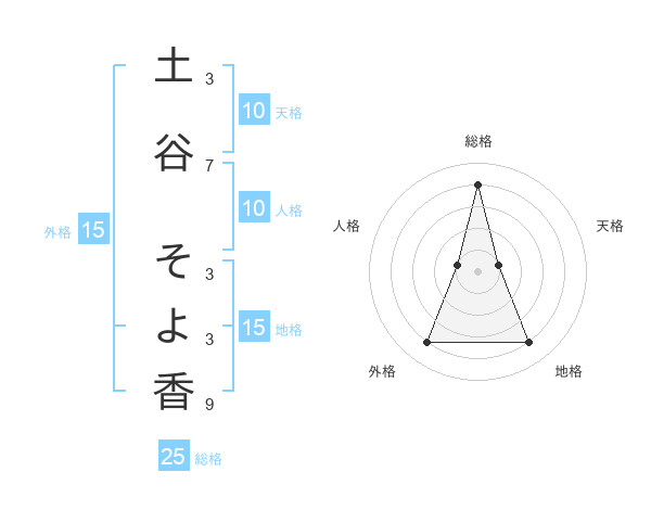 土谷 そよ香さんを姓名の画数から五運を鑑定