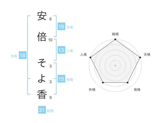 安倍 そよ香さんを姓名の画数から五運を鑑定