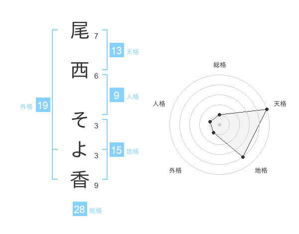 尾西 そよ香さんを姓名の画数から五運を鑑定