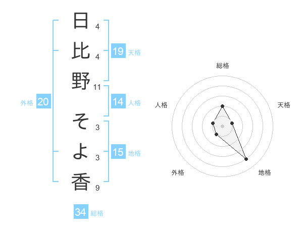 日比野 そよ香さんを姓名の画数から五運を鑑定