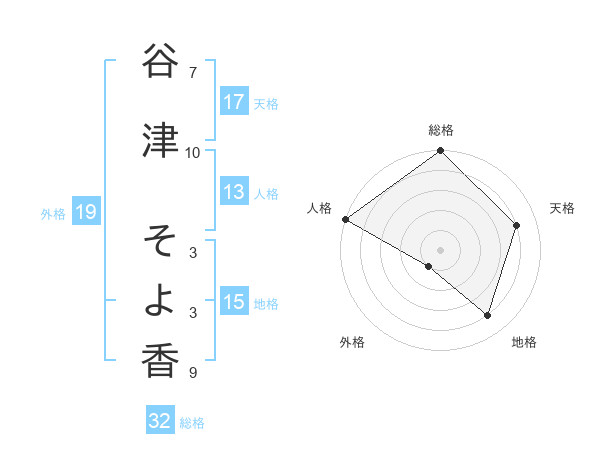谷津 そよ香さんの総格は32画の5点!