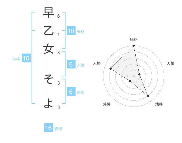 早乙女 そよさんの総格は16画の5点!
