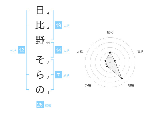 日比野 そらのさんの総格は26画の2点