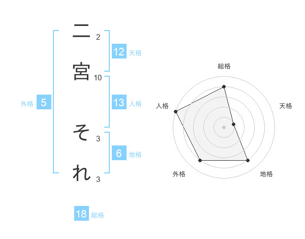 二宮 それさんの総格は18画の4点!