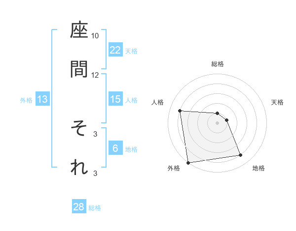 座間 それさんの総格は28画の1点!