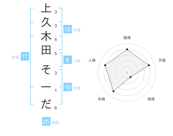 上久木田 そーださんの外格は17画の4点!