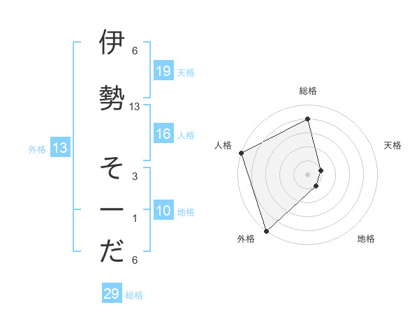 伊勢 そーださんの外格は13画の5点!
