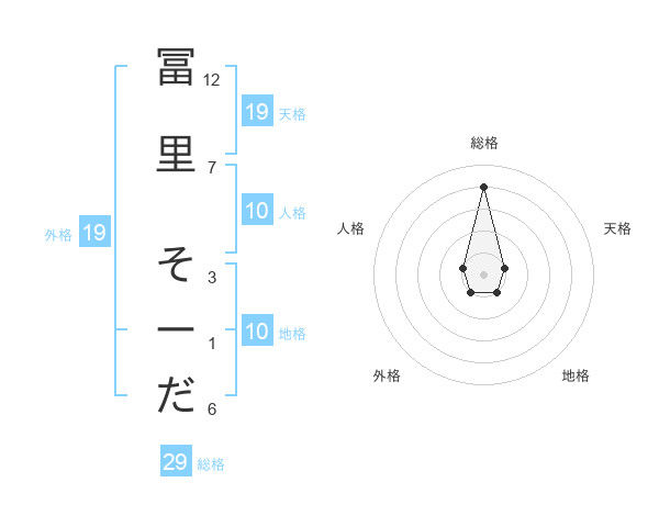 冨里 そーださんの天格は19画の1点!
