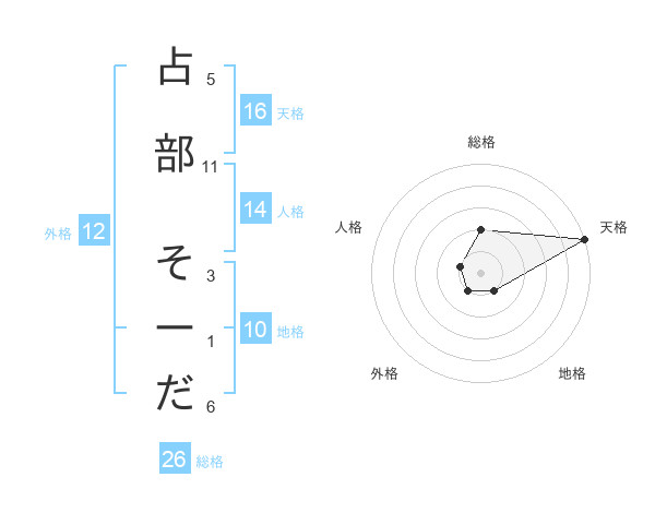 占部 そーださんの天格は16画の5点!