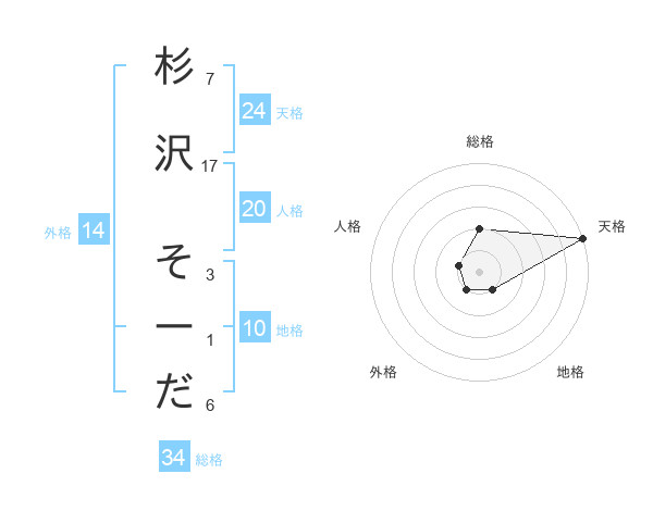 杉沢 そーださんを姓名の画数から五運を鑑定
