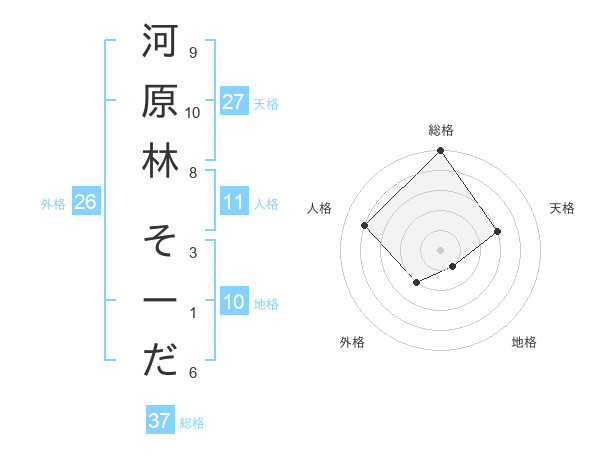 河原林 そーださんの地格は10画の1点!