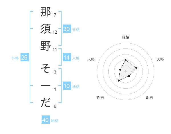 那須野 そーださんの地格は10画の1点!