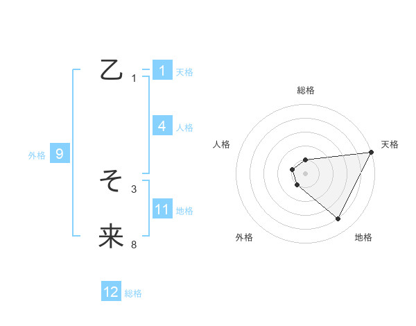 乙 そ来さんの総格は12画の1点!