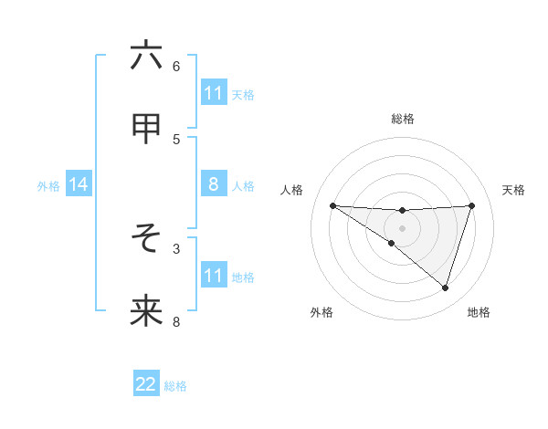 六甲 そ来さんの総格は22画の1点!