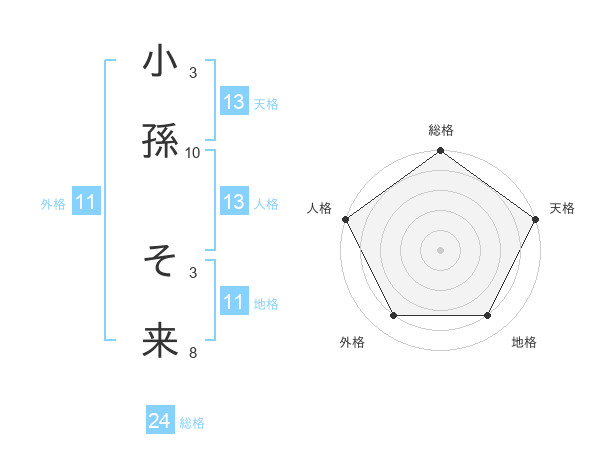 小孫 そ来さんの天格は13画の5点!