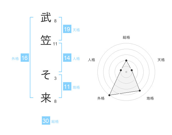 武笠 そ来さんの総格は30画の2点!