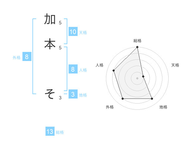 加本 そさんの総格は13画の5点!