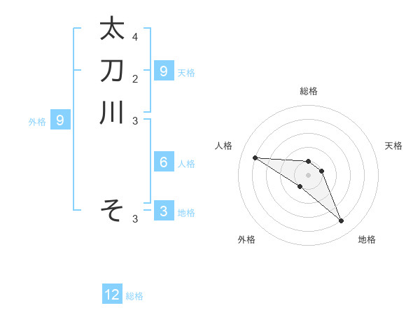 太刀川 そさんの総格は12画の1点!