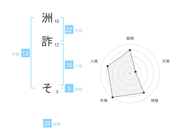洲詐 そさんの外格は13画の5点!