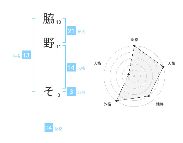 脇野 そさんの外格は13画の5点!