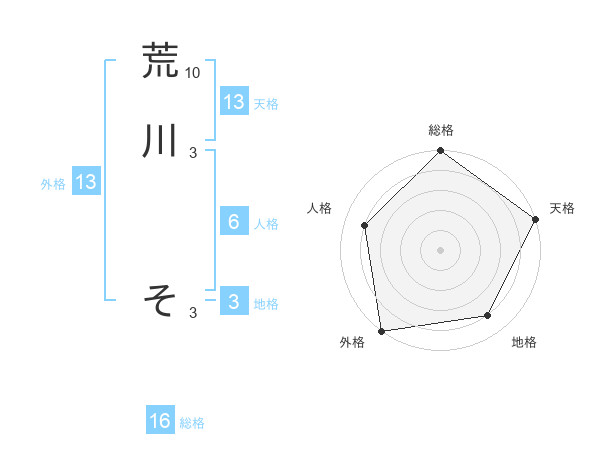 荒川 そさんの天格は13画の5点!