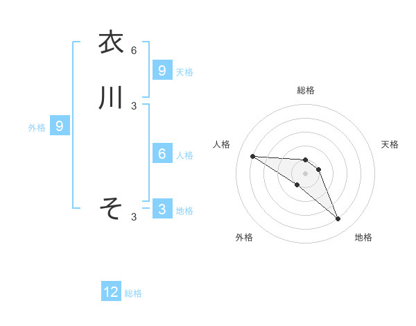 衣川 そさんの地格は3画の4点!