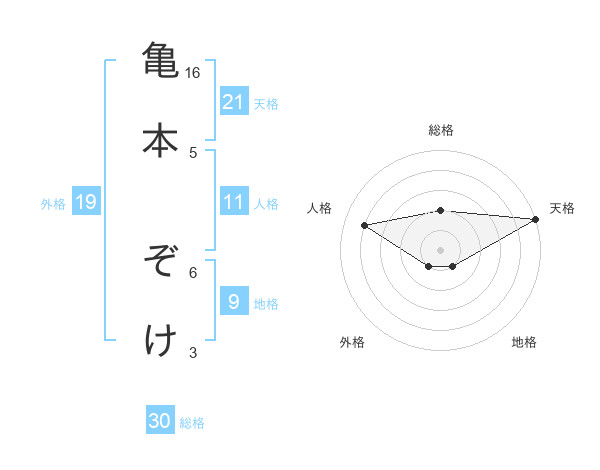 亀本 ぞけさんを姓名の画数から五運を鑑定
