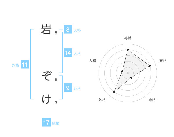 岩 ぞけさんの総格は17画の4点!