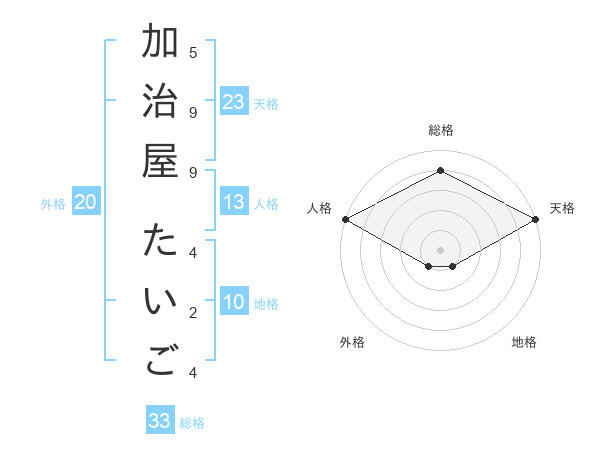 加治屋 たいごさんを姓名の画数から五運を鑑定