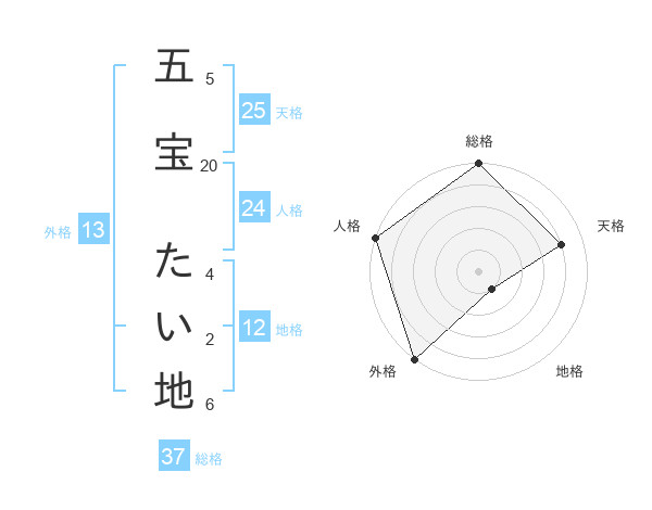 五宝 たい地さんを姓名の画数から五運を鑑定