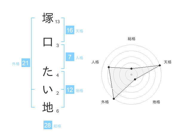 塚口 たい地さんを姓名の画数から五運を鑑定