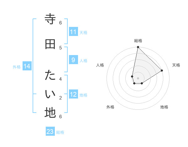 寺田 たい地さんを姓名の画数から五運を鑑定