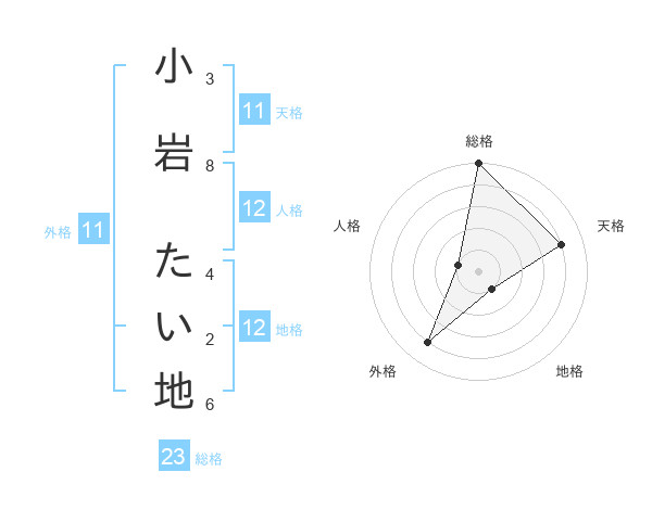 小岩 たい地さんを姓名の画数から五運を鑑定