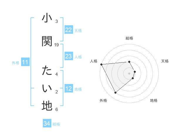 小関 たい地さんの人格は23画の5点!