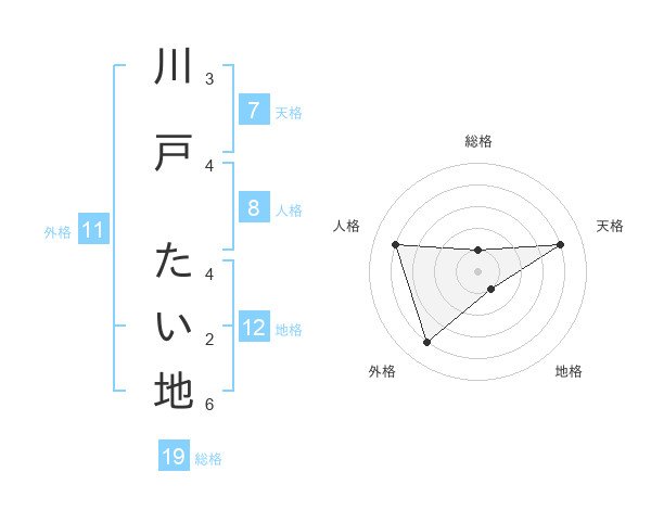 川戸 たい地さんを姓名の画数から五運を鑑定
