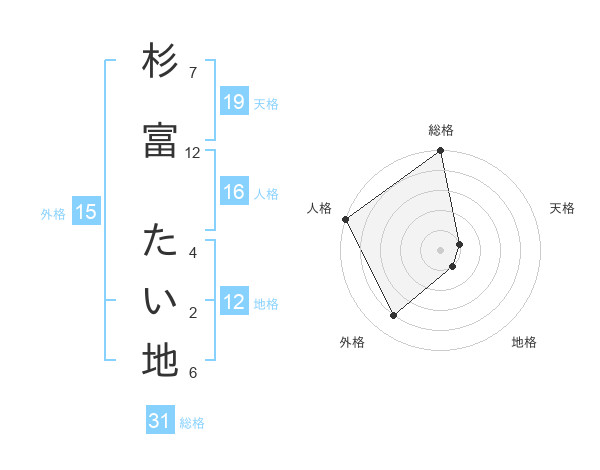 杉富 たい地さんを姓名の画数から五運を鑑定