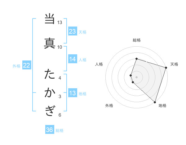 当真 たかぎさんを姓名の画数から五運を鑑定