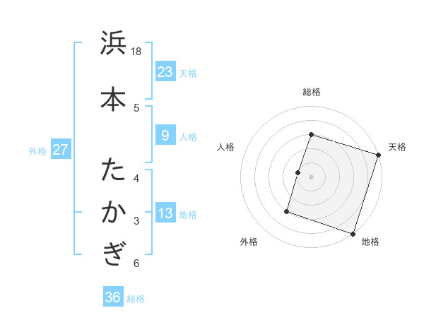 浜本 たかぎさんを姓名の画数から五運を鑑定