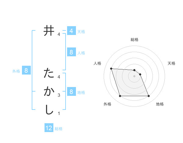 井 たかしさんの地格は8画の4点!