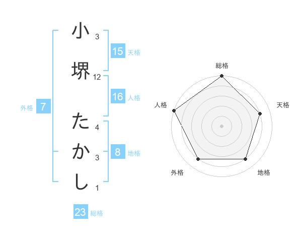 小堺 たかしさんの総格は23画の5点!
