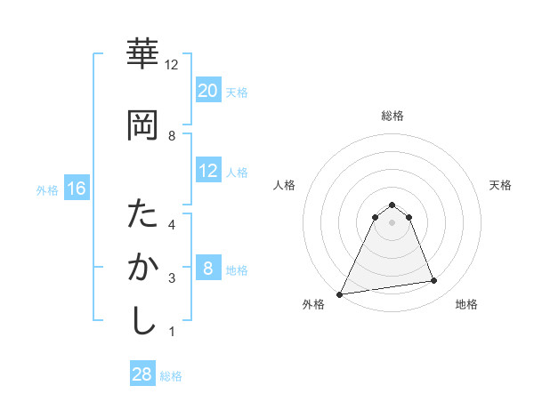華岡 たかしさんを姓名の画数から五運を鑑定