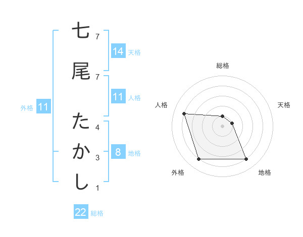 七尾 たかしさんを姓名の画数から五運を鑑定