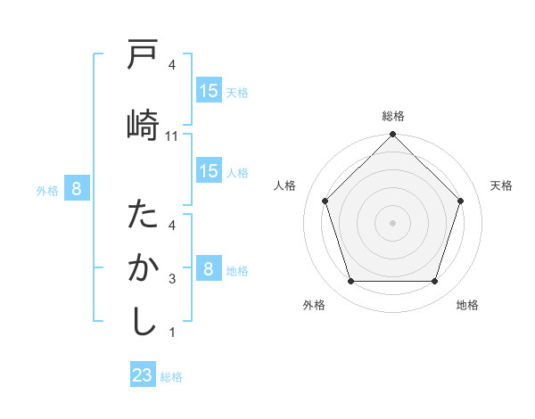 戸崎 たかしさんの総格は23画の5点!