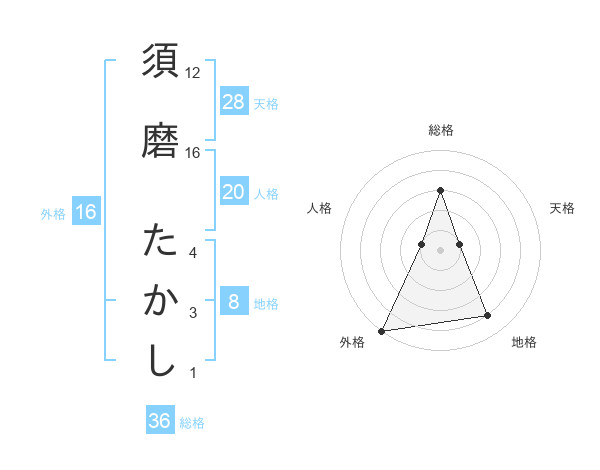 須磨 たかしさんを姓名の画数から五運を鑑定