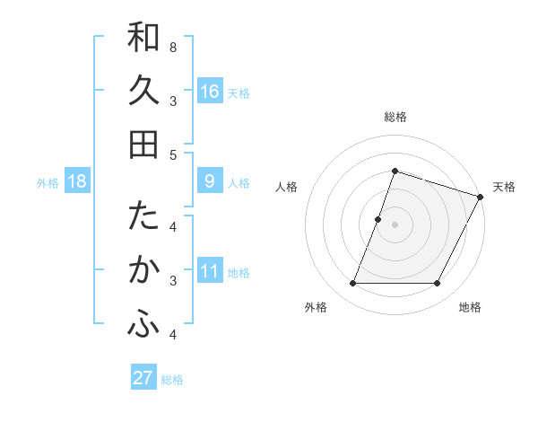 和久田 たかふさんを姓名の画数から五運を鑑定