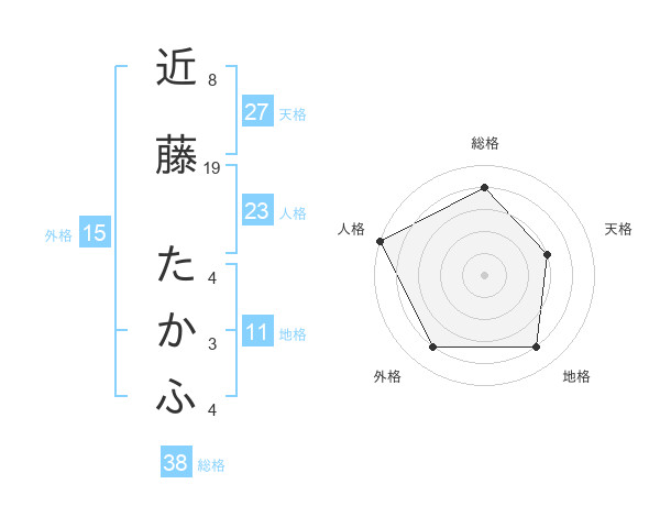 近藤 たかふさんを姓名の画数から五運を鑑定